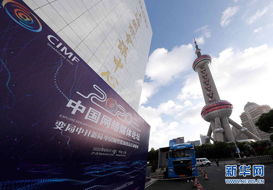 9月27日,由中央網(wǎng)信辦、上海市委網(wǎng)信委、新華通訊社聯(lián)合主辦的“2020中國網(wǎng)絡(luò)媒體論壇”在上海開幕。來自政府、學(xué)界、業(yè)界的嘉賓圍繞“變局中開新局:中國網(wǎng)絡(luò)媒體的責(zé)任與使命”這一核心主題展開深入探討和交流。圖為中國網(wǎng)絡(luò)媒體論壇會場外景。新華網(wǎng) 陳杰 攝