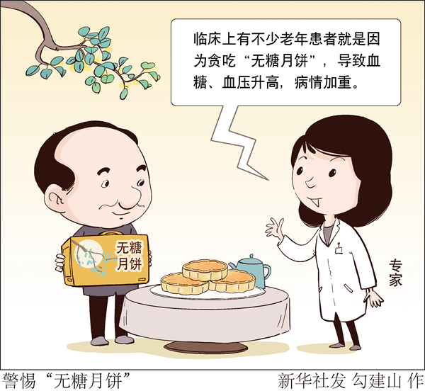 另外,市場(chǎng)上所謂的“無(wú)糖月餅”,是指餡料中不含蔗糖的月餅,但月餅本身含有大量的淀粉,可分解成葡萄糖。臨床上有不少老年患者就是因?yàn)樨澇浴盁o(wú)糖月餅”,導(dǎo)致血糖、血壓升高,病情加重。