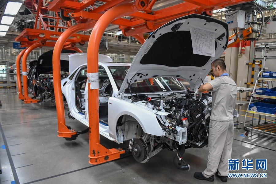 工人在一汽-大眾長春基地總裝車間裝配車輛(9月1日攝)。9月15日,國家統(tǒng)計局數(shù)據(jù)顯示,8月份,全國規(guī)模以上工業(yè)增加值同比增長5.6%,增速比7月份加快0.8個百分點。1至8月份,全國規(guī)模以上工業(yè)增加值同比增長0.4%,增速實現(xiàn)由負轉正。 新華社記者 張楠 攝