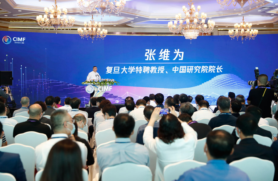 ??? 9月27日,2020中國(guó)網(wǎng)絡(luò)媒體論壇內(nèi)容論壇在上海舉行,各界嘉賓圍繞“后疫情時(shí)代網(wǎng)絡(luò)傳播的‘變’與‘新’”這一主題開展探討和交流。圖為復(fù)旦大學(xué)中國(guó)研究院院長(zhǎng)、特聘教授張維為作主題演講。