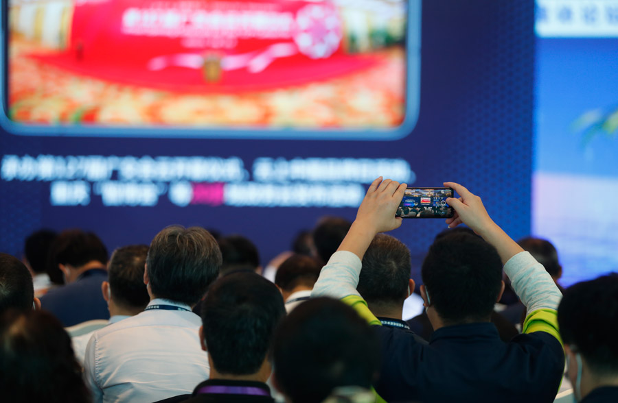 ??? 9月27日,2020中國網(wǎng)絡(luò)媒體論壇內(nèi)容論壇在上海舉行,各界嘉賓圍繞“后疫情時代網(wǎng)絡(luò)傳播的‘變’與‘新’”這一主題開展探討和交流。圖為觀眾在論壇現(xiàn)場拍攝。