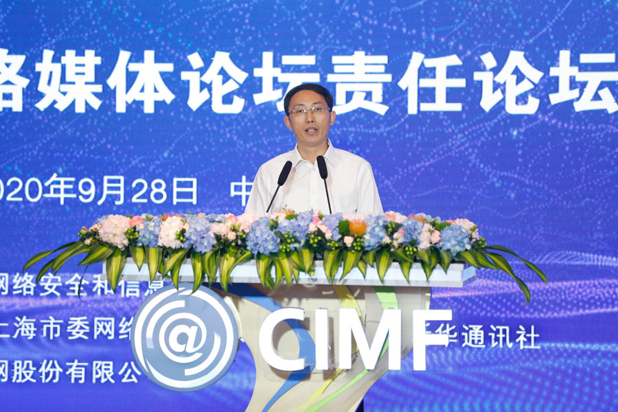 新華網(wǎng)黨委副書記、總編輯郭奔勝在2020中國網(wǎng)絡(luò)媒體論壇責(zé)任論壇上致辭。新華網(wǎng) 陳杰 攝