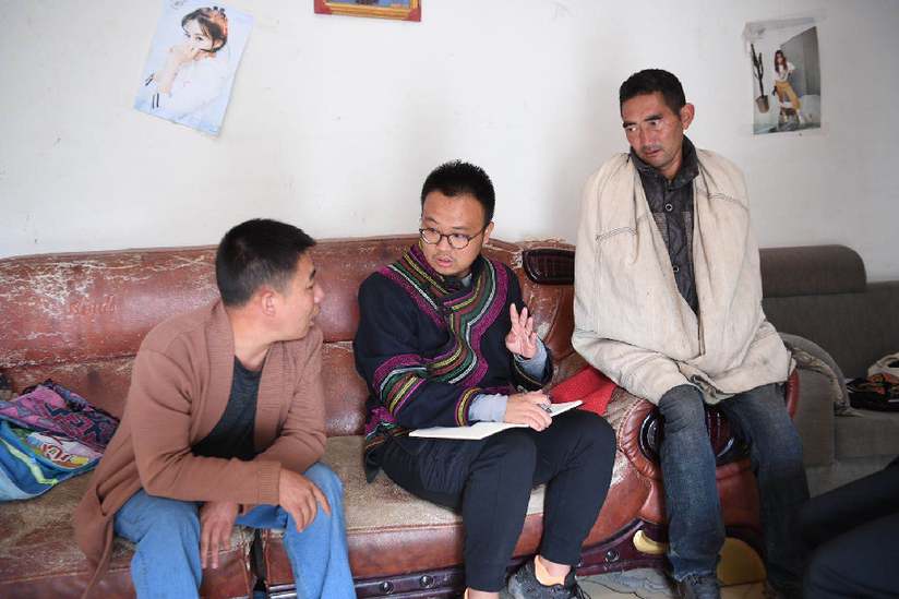 四川日報侯沖在美姑縣典補(bǔ)鄉(xiāng)中心小學(xué)采訪當(dāng)?shù)乜剌z保學(xué)