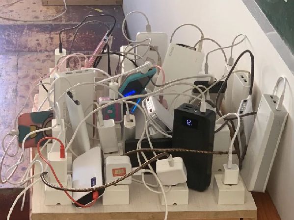 每間教室的講臺(tái)旁邊都放著一排插線板,上面插滿了充電寶。據(jù)學(xué)生介紹,學(xué)校封禁了宿舍內(nèi)的插電孔,他們只能將充電寶在教室充滿電后帶回宿舍用。“有時(shí)候教室里充電的地方滿了,要么排隊(duì),要么去超市花錢(qián)充?!庇捎谒奚釠](méi)插電孔、沒(méi)網(wǎng),這里的大學(xué)生幾乎沒(méi)人用電腦。小許說(shuō),學(xué)校說(shuō)宿舍不能充電是為了防火安全,但是如此管理未免太過(guò)“簡(jiǎn)單粗暴”。