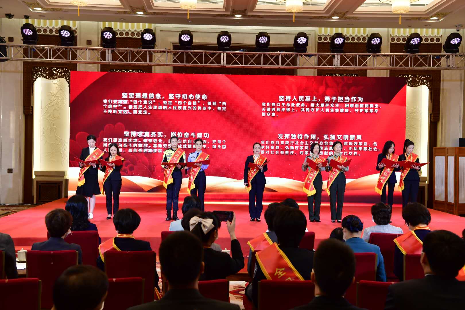 受表彰的抗疫全國(guó)三八紅旗手代表宣讀倡議書。