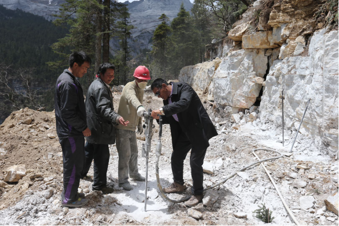 斯那定珠和工人一起修建香格里拉大峽谷內(nèi)的公路 索朗農(nóng)布/攝