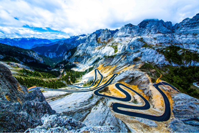 圖為香格里拉大峽谷巴拉格宗景區(qū)內(nèi)高山和峽谷之間由斯那定珠出資修建的公路。 七林農(nóng)布/攝