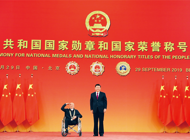 今天,在全國(guó)各族人民共同慶祝中華人民共和國(guó)成立70周年之際,我們?cè)谶@里隆重舉行儀式,將國(guó)家最高榮譽(yù)授予為國(guó)家建設(shè)和發(fā)展建立了卓越功勛的杰出人士和為促進(jìn)中外交流合作作出杰出貢獻(xiàn)的國(guó)際友人。
