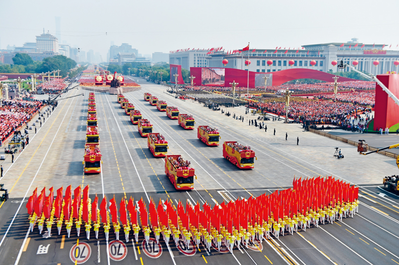 70年來(lái),在中國(guó)共產(chǎn)黨堅(jiān)強(qiáng)領(lǐng)導(dǎo)下,中國(guó)人民勇于探索、不斷實(shí)踐,成功開辟了中國(guó)特色社會(huì)主義道路,推動(dòng)中國(guó)特色社會(huì)主義進(jìn)入新時(shí)代,中國(guó)大踏步趕上了時(shí)代,中國(guó)人民意氣風(fēng)發(fā)走在了時(shí)代前列!