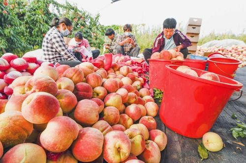 9月22日,河北唐山遵化市團瓢莊鄉(xiāng)宋各莊村農(nóng)民在收獲秋桃。新華社發(fā)(劉滿倉 攝)