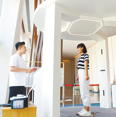 顧客在滄州市明珠國(guó)際服裝生態(tài)新城進(jìn)行3D掃描量體。本報(bào)記者 史自強(qiáng)攝