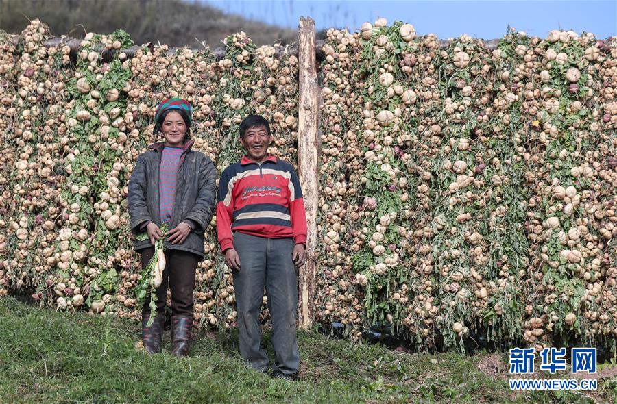 昭覺(jué)縣火普村村民在晾曬蘿卜。攝于2020年5月。新華社記者 江宏景 攝