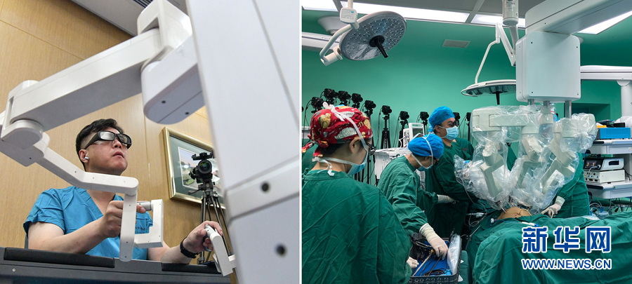 當日,青島大學附屬醫(yī)院醫(yī)療團隊利用5G技術和國產(chǎn)原研手術機器人,成功完成一例超遠程泌尿外科手術,為身處貴州省安順市西秀區(qū)人民醫(yī)院的膀胱癌患者實施了膀胱根治性切除手術。新華社發(fā)