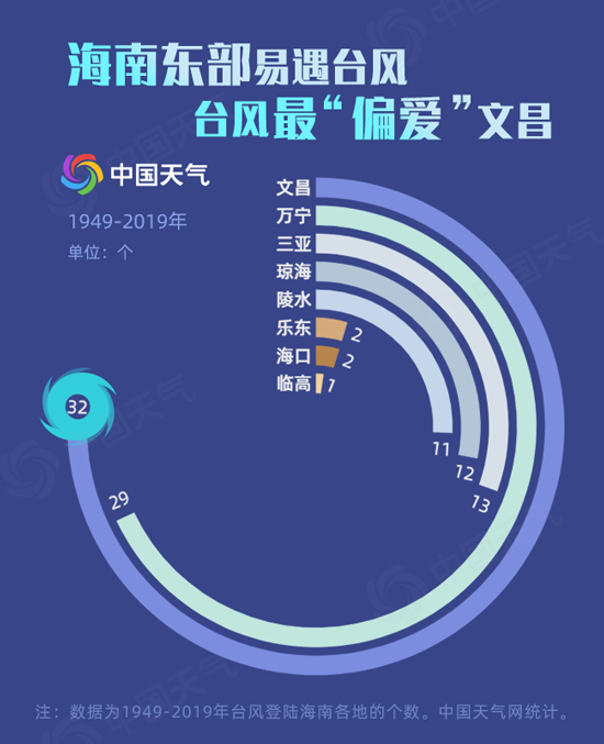 從登陸地點(diǎn)來說,海南東部沿海最易遭臺(tái)風(fēng)襲擊,像是文昌、萬寧等地均為臺(tái)風(fēng)登陸的集中地;其次,海南南部沿海地區(qū)也是臺(tái)風(fēng)登陸的密集區(qū),比如三亞、陵水等地也經(jīng)常有臺(tái)風(fēng)“上岸”。