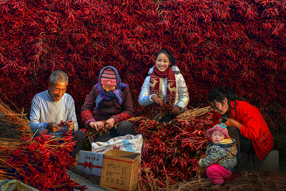 河南省西華縣紅花集鎮(zhèn)周寨村依靠農(nóng)副業(yè)種植打贏扶貧攻堅(jiān)戰(zhàn),他們積極開展紅辣椒種植,人均年收入過萬元,日子過得紅紅火火,家家脫貧摘帽向著小康社會(huì)邁進(jìn)!(李偉 攝)