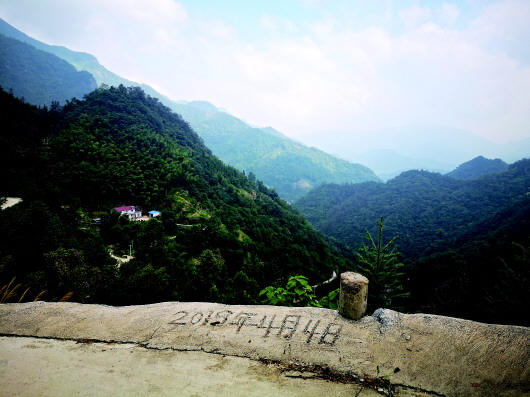 曉天鎮(zhèn)通往山上蘇平村珓子石組的水泥路上刻著修路完工的日期(8月29日攝)。本報記者蔣彤?dāng)z