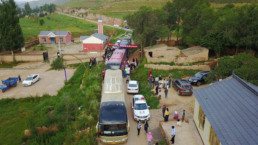 寧夏西吉縣白崖鄉(xiāng)半子溝村村民準備集體搬遷至寧夏銀川市金鳳區(qū)潤豐村(2017年8月17日攝,無人機照片)。新華社記者 王鵬 攝
