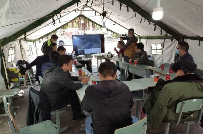 上圖為彭世濤和團(tuán)隊(duì)在用無(wú)人機(jī)幫助監(jiān)測(cè)西昌森林火災(zāi)。