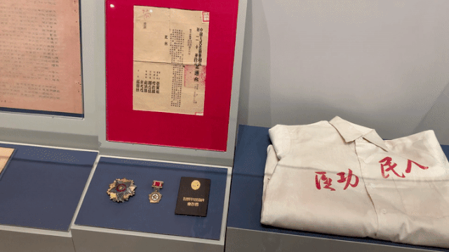 在新華社社史館二樓的展廳里,除了上述文字,還擺放著當(dāng)年電文的手寫原稿,戰(zhàn)地記者的筆記本、記者證,以及獲得的各種軍功獎(jiǎng)?wù)?,還有戰(zhàn)場(chǎng)上用過的電文發(fā)報(bào)機(jī)……
