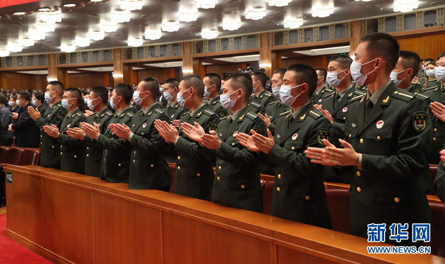 ??? 10月23日,紀(jì)念中國(guó)人民志愿軍抗美援朝出國(guó)作戰(zhàn)70周年大會(huì)在北京人民大會(huì)堂隆重舉行。圖為志愿軍老戰(zhàn)士、老同志入場(chǎng)時(shí),大會(huì)現(xiàn)場(chǎng)的解放軍和武警部隊(duì)官兵代表起立鼓掌。(新華網(wǎng) 翟子赫 攝)