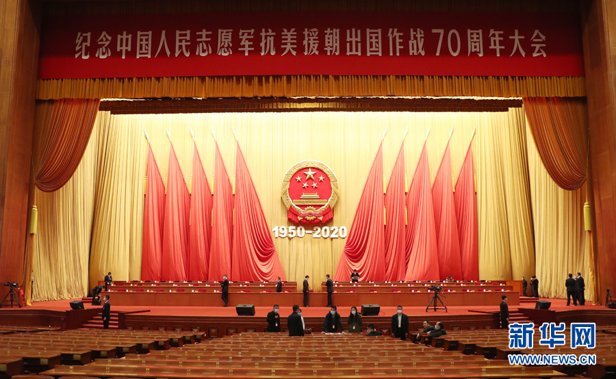 ??? 10月23日,紀(jì)念中國(guó)人民志愿軍抗美援朝出國(guó)作戰(zhàn)70周年大會(huì)在北京人民大會(huì)堂隆重舉行。圖為人民大會(huì)堂大禮堂。(新華網(wǎng) 翟子赫 攝)