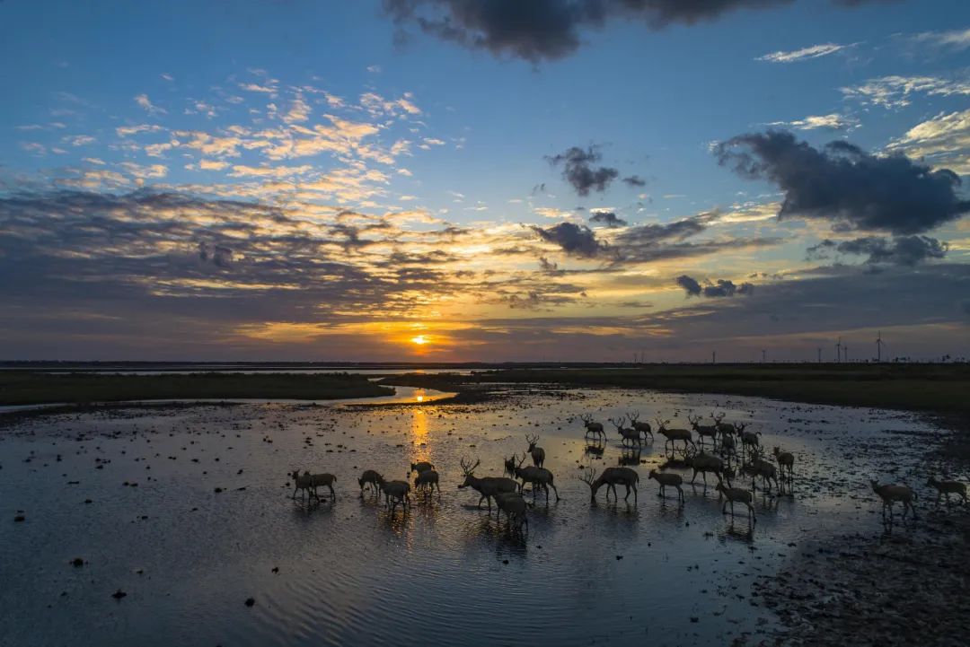 10月7日,江蘇省鹽城市大豐黃海野麋蕩中的麋鹿在濕地中自由地覓食 (圖片來(lái)源:視覺(jué)中國(guó))
