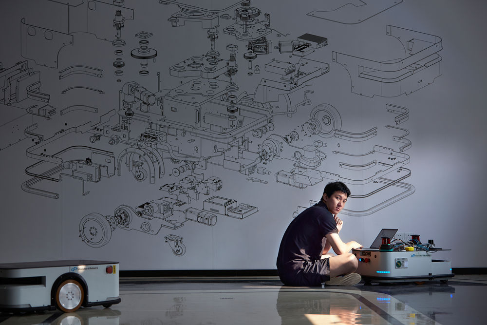 王永錕在公司調(diào)試機器人。(采訪對象供圖)
