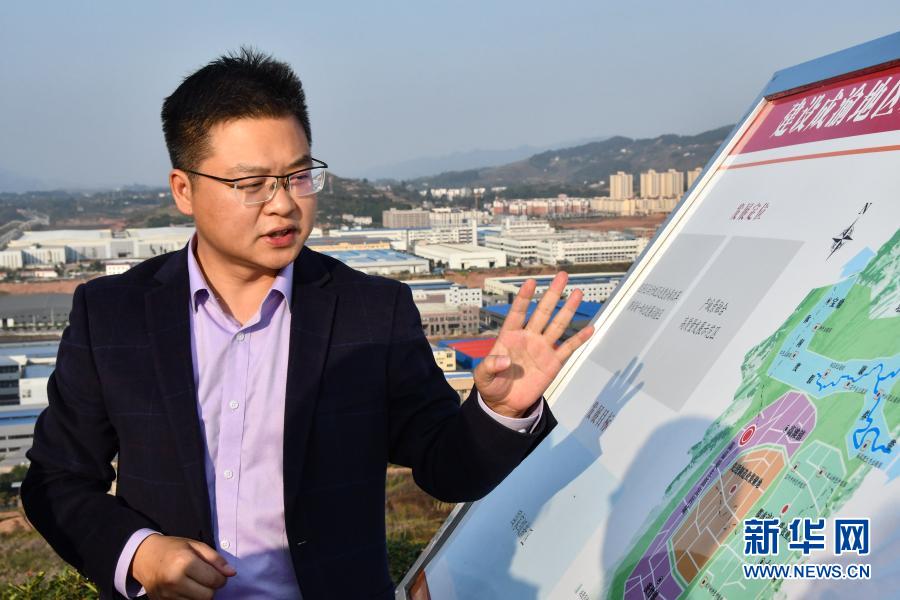 在四川省廣安市鄰水縣川渝合作高灘園區(qū),鄰水縣副縣長趙冬介紹園區(qū)遠(yuǎn)景目標(biāo)(11月12日攝)。新華社記者 周相吉 攝