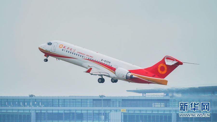 一架ARJ21飛機(jī)在飛行(資料照片)。新華社發(fā)(中國商飛四川分公司供圖)