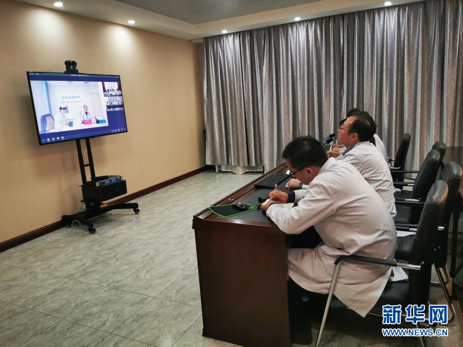 2019年10月25日,黑龍江省海倫市人民醫(yī)院醫(yī)生通過遠程技術(shù)與外地專家一同進行會診(手機照片)。新華社發(fā)