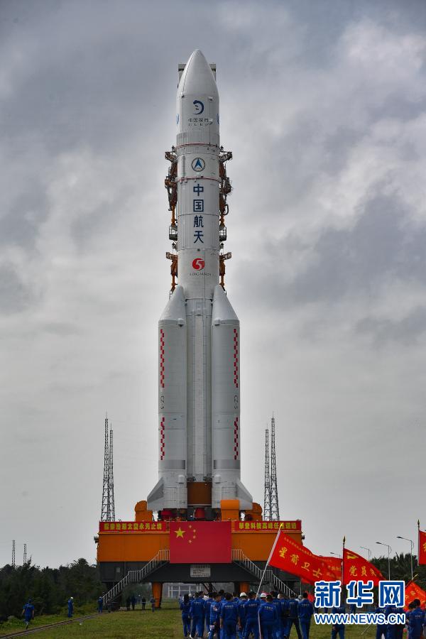 新華社海南文昌11月17日電(記者胡喆、陳凱姿)記者從國家航天局獲悉,11月17日,長征五號遙五運載火箭和嫦娥五號探測器在中國文昌航天發(fā)射場完成技術(shù)區(qū)總裝測試工作后,垂直轉(zhuǎn)運至發(fā)射區(qū),計劃于11月下旬擇機實施發(fā)射。