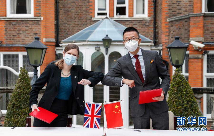 10月16日,在英國(guó)倫敦,代表中國(guó)國(guó)家文物局的中國(guó)駐英國(guó)大使館文化處一秘于果(右)和代表英國(guó)大都會(huì)警察局的探員蘇菲·海斯簽署文物接收確認(rèn)書。新華社記者 韓巖 攝
