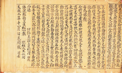 國內(nèi)已知有紀年的最早雕版印刷品——五代后唐天成二年刻本《佛說觀彌勒菩薩上生兜率天經(jīng)一卷》,此次也收入名錄。這是早期印刷品實物的重要例證。