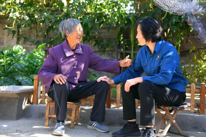 一名駐村第一書(shū)記(右)在走訪(fǎng)村民 朱崢 攝