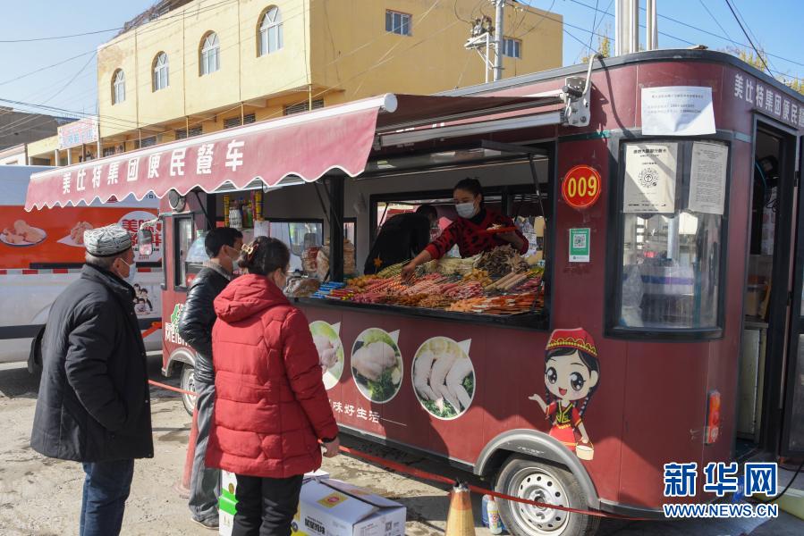 新華社烏魯木齊11月20日電(記者張鐘凱、丁磊)午飯時間,在新疆和田地區(qū)墨玉縣扎瓦鎮(zhèn)客運站旁,一輛棗紅色餐車飄出陣陣肉香。烤雞柳、炸雞脖、炸雞排……琳瑯滿目的美食吸引了不少食客。