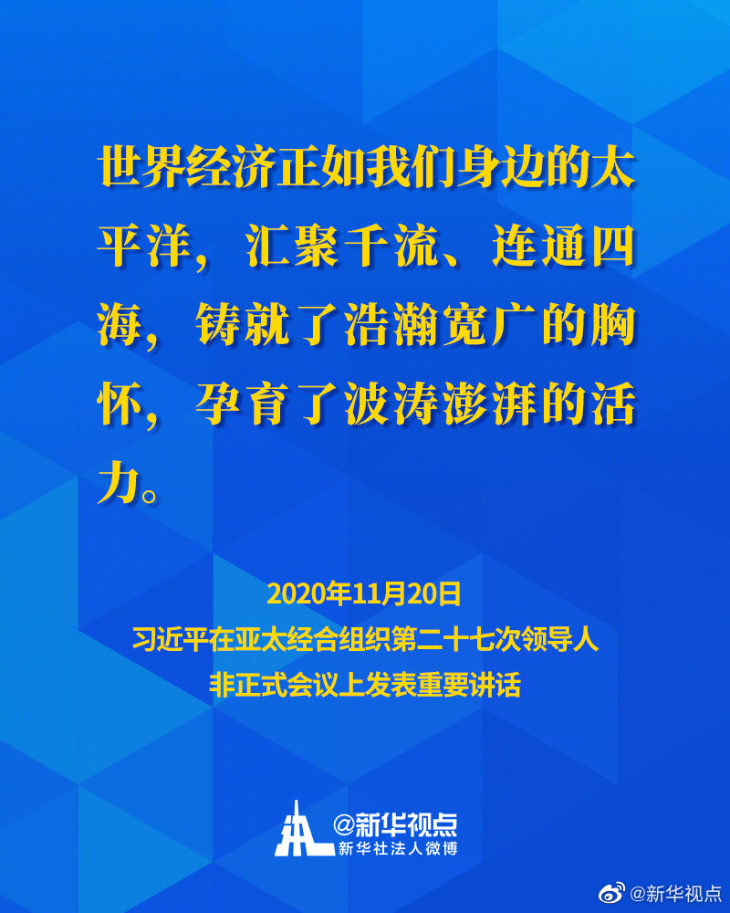 11月20日,國(guó)家主席習(xí)近平在亞太經(jīng)合組織第二十七次領(lǐng)導(dǎo)人非正式會(huì)議上發(fā)表重要講話(huà)。一起來(lái)看習(xí)主席的APEC金句↓↓