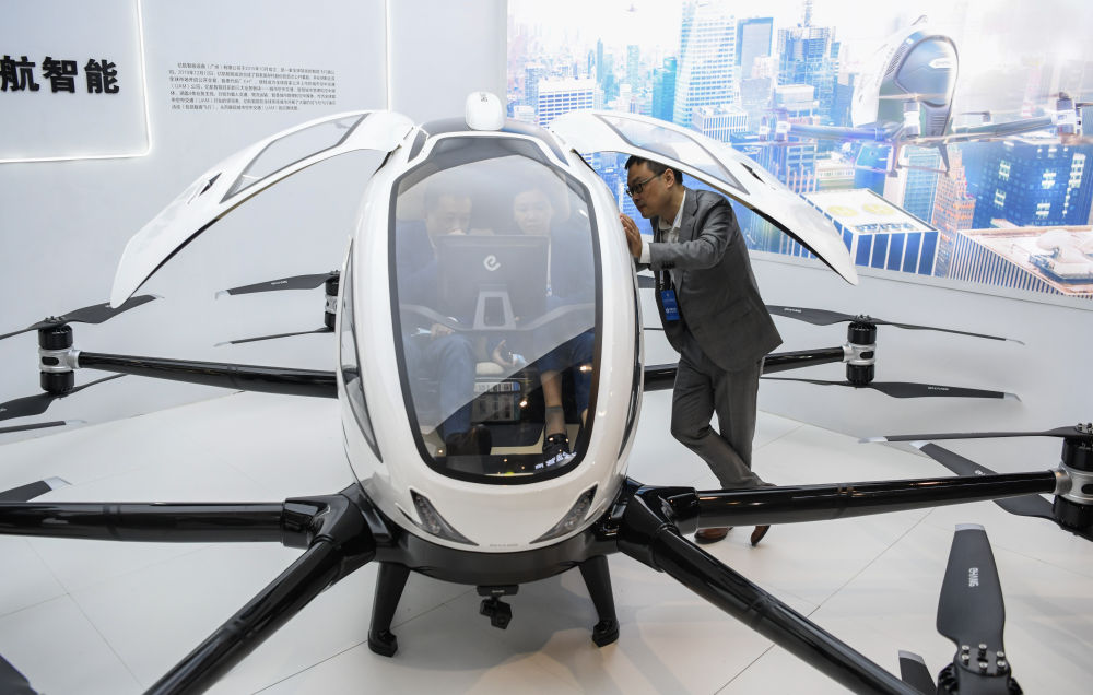 11月19日至21日,2020中國(guó)5G+工業(yè)互聯(lián)網(wǎng)大會(huì)在位于武漢的中國(guó)光谷科技會(huì)展中心舉行,大會(huì)特色活動(dòng)“5G+工業(yè)互聯(lián)網(wǎng)成果展”同步舉行。圖為11月19日,參觀者了解一臺(tái)自動(dòng)駕駛飛行器。新華社記者 程敏 攝