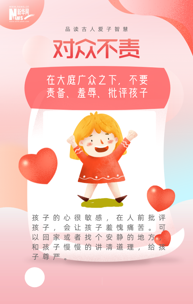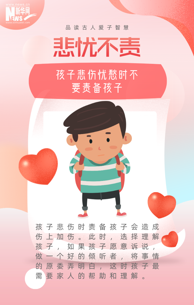 如何呵護孩子幼小的心靈,給他們一個健康的成長環(huán)境?古時候有非常多的教育理念,蘊含了深刻的心理學和教育學原理。其中,著名的愛子“七不責”成為經典教育理念:“卑幼有過,慎其所以責讓之者。對眾不責,愧悔不責,暮夜不責,正飲食不責,正歡慶不責,正悲憂不責,疾病不責。”。今天是世界兒童日,一起品讀古人的愛子智慧。