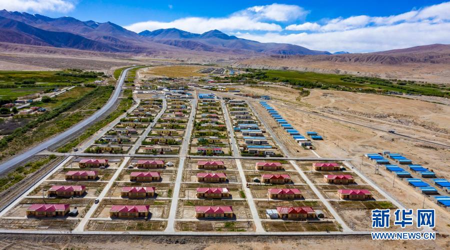 這是2019年8月9日拍攝的新疆阿勒泰地區(qū)青河縣易地扶貧搬遷安置點(diǎn)阿格達(dá)拉鎮(zhèn)。新華社記者 沙達(dá)提 攝