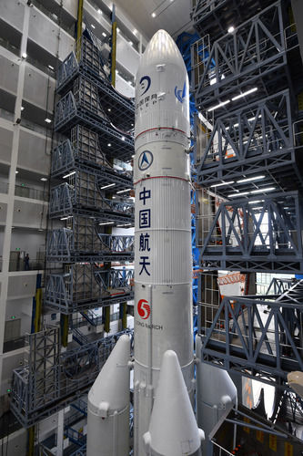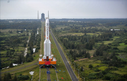 這是11月17日在中國文昌航天發(fā)射場拍攝的長征五號遙五運載火箭。新華社記者 郭程 攝