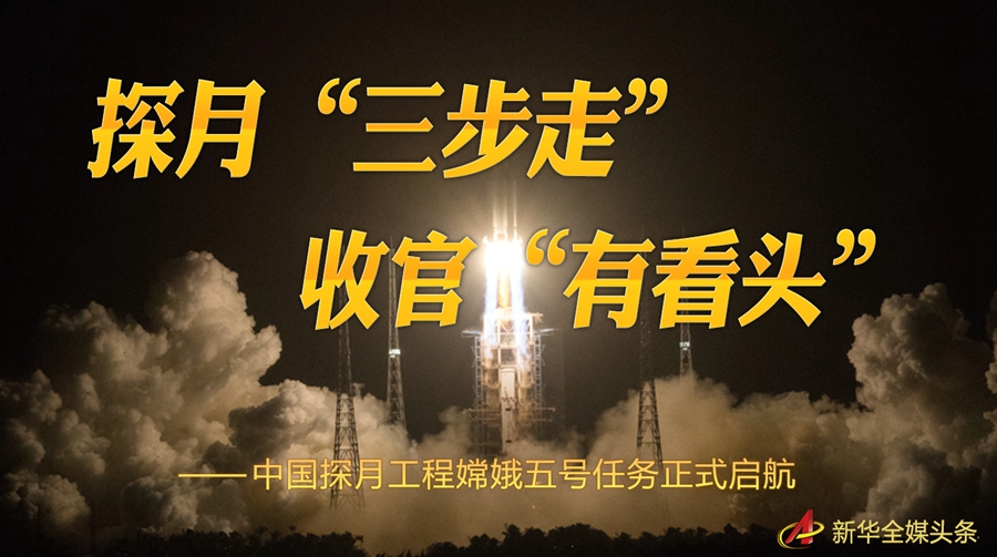 新華社海南文昌11月24日電? 題:探月“三步走” 收官“有看頭”——中國(guó)探月工程嫦娥五號(hào)任務(wù)正式啟航