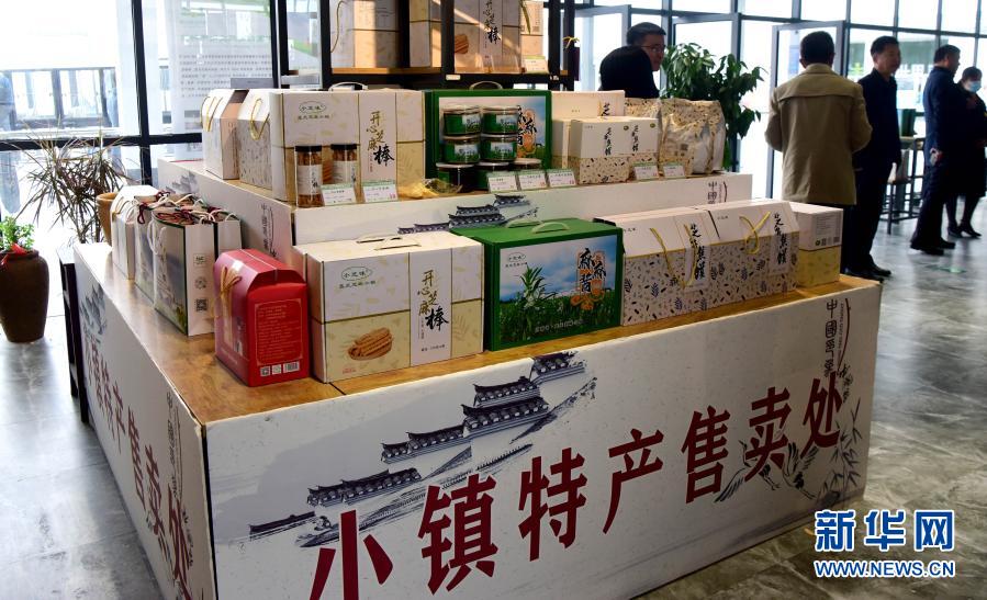 這是河南省駐馬店市平輿縣小鎮(zhèn)特產(chǎn)售賣系列產(chǎn)品展柜(10月28日攝)。