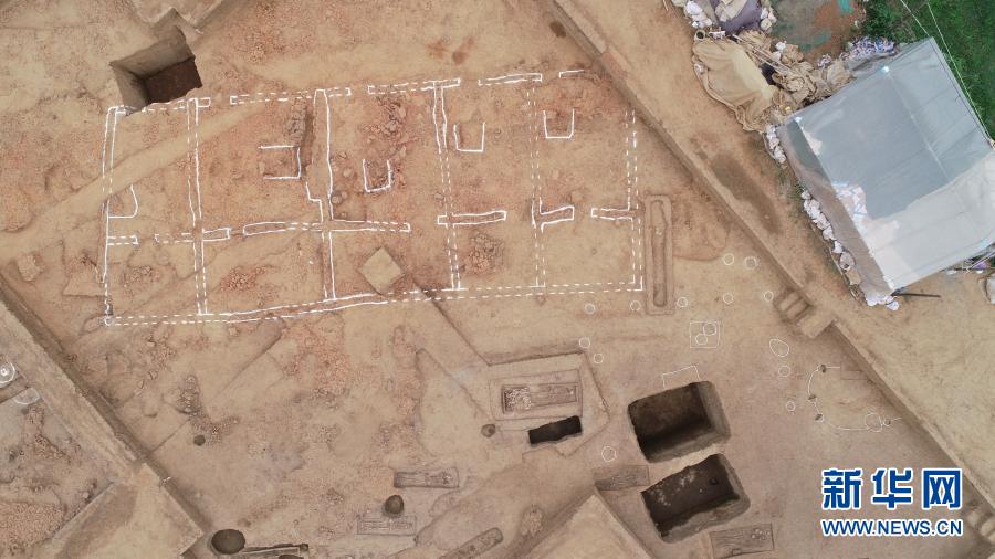 圖為河南南陽黃山遺址部分發(fā)掘現場航拍圖(2019年6月27日攝,無人機照片)。新華社發(fā)(河南省文物考古研究院供圖)