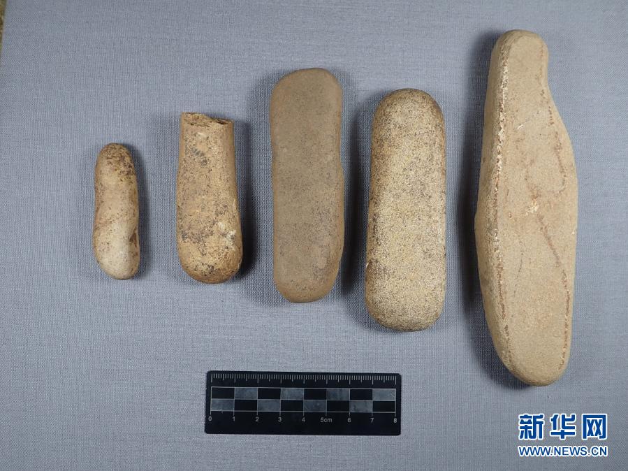 河南南陽黃山遺址出土的石質制玉工具——系列石銼(2019年1月8日攝)。新華社發(fā)(河南省文物考古研究院供圖)