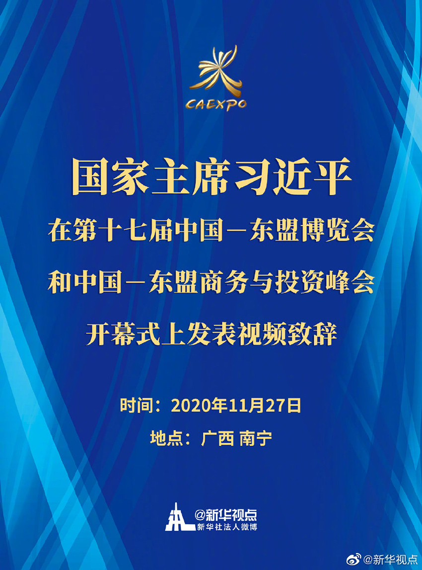 習(xí)近平在第十七屆中國-東盟博覽會(huì)和中國-東盟商務(wù)與投資峰會(huì)開幕式上發(fā)表視頻致辭