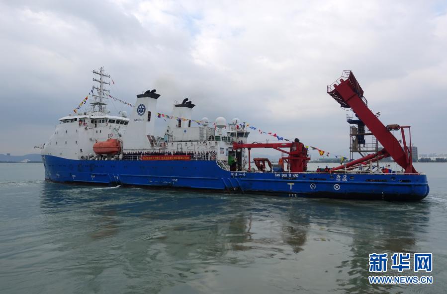10月10日,“奮斗者”號(hào)全海深載人潛水器與“探索一號(hào)”科考船在三亞市南山港啟程開展萬米級(jí)海試。新華社記者 趙穎全 攝