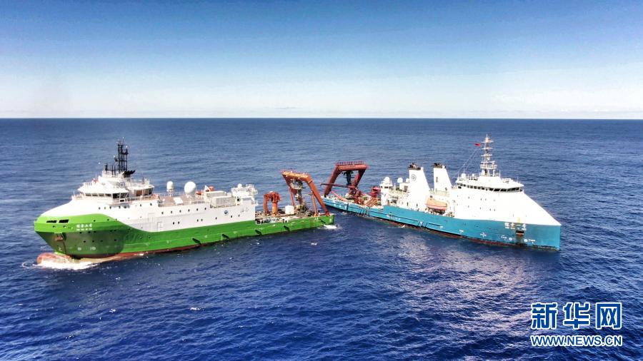 “探索一號(hào)”和“探索二號(hào)”科考船在作業(yè)(資料照片)。新華社發(fā)(楊寧軍 攝)