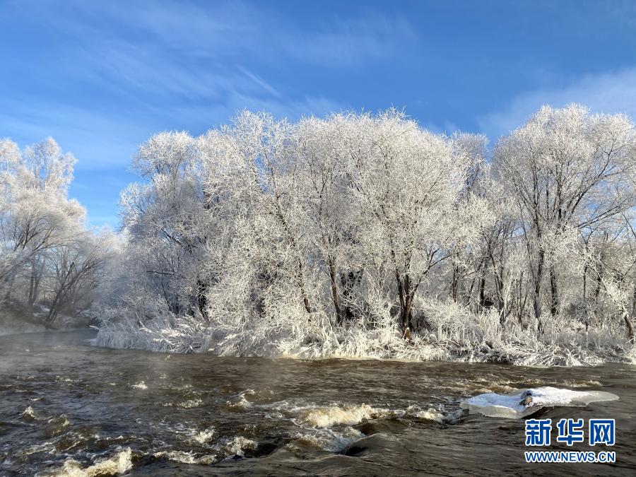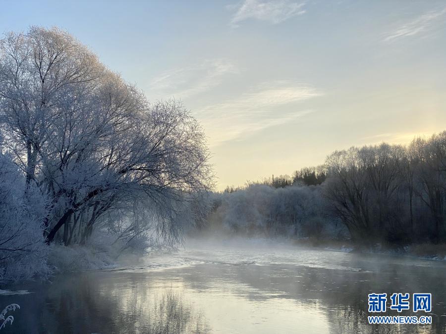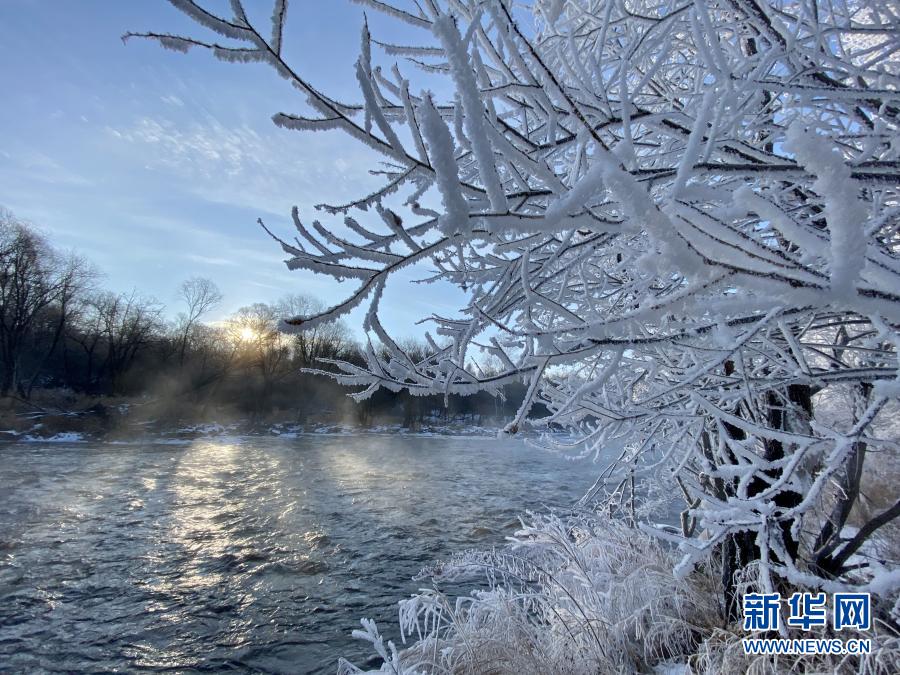 遜克縣位于黑龍江省北部,冬季漫長(zhǎng)而寒冷。當(dāng)?shù)貛?kù)爾濱水電站放水時(shí),水遇冷形成霧氣,落到樹(shù)枝上凝結(jié)成霜花,在平臺(tái)村周邊形成綿延的霧凇景觀。