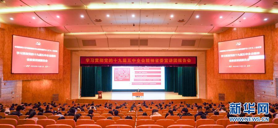 中共江蘇省委宣講團在中國藥科大學進行學習貫徹黨的十九屆五中全會精神專題報告會(12月1日攝)。新華社記者 李博 攝
