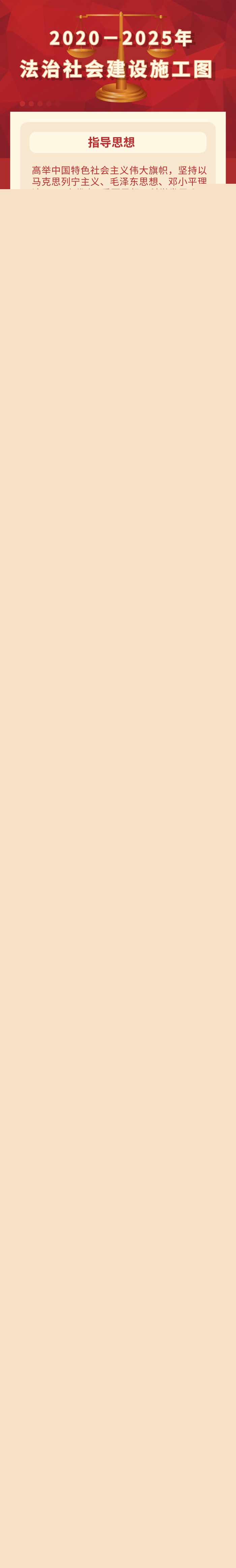 ?。ㄒ唬┲笇?dǎo)思想。高舉中國特色社會主義偉大旗幟,堅持以馬克思列寧主義、毛澤東思想、鄧小平理論、“三個代表”重要思想、科學(xué)發(fā)展觀、習(xí)近平新時代中國特色社會主義思想為指導(dǎo),全面貫徹黨的十九大和十九屆二中、三中、四中、五中全會精神,全面貫徹習(xí)近平法治思想,增強“四個意識”、堅定“四個自信”、做到“兩個維護”,堅定不移走中國特色社會主義法治道路,堅持法治國家、法治政府、法治社會一體建設(shè),培育和踐行社會主義核心價值觀,弘揚社會主義法治精神,建設(shè)社會主義法治文化,增強全社會厲行法治的積極性和主動性,推動全社會尊法學(xué)法守法用法,健全社會公平正義法治保障制度,保障人民權(quán)利,提高社會治理法治化水平,為全面建設(shè)社會主義現(xiàn)代化國家、實現(xiàn)中華民族偉大復(fù)興的中國夢筑牢堅實法治基礎(chǔ)。